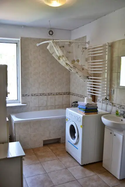 Łazienka - wyposażona w wannę, pralkę, wc.